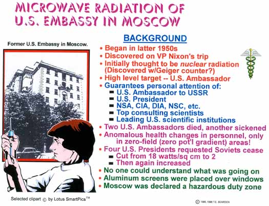 Historical Background of Scalar EM Weapons Colonel Bearden is a nuclear engineer, wargames analyst, and military tactician with over 26 years experience in air defense systems, tactics and operations, technical intelligence, antiradiation missile countermeasures, nuclear weapons employment, computerized wargames and military systems requirements. [This was a paper hastily whipped together, some years ago, to be able to send an abbreviated background paper to correspondents. The history prior to this paper runs from Hamilton and his quaternions to Maxwell and his quatemion theory, to Heaviside's vector curtailment of Maxwell's theory, to Nikola Tesla, to Whittaker, to Einstein and relativity, to Kaluza and Klein, and to the beginning of quantum mechanics.] We begin our history in 1939 at T.H. Moray's lab in Salt Lake City. In that year, a Russian agent obtained detailed drawings of Moray's specialized amplifier which extracted energy from the powerful quantum mechanical fluctuations of vacuum. Moray's radiant energy device weighed 55 pounds and produced 50 kilowatts of power without conventional input. Numerous demonstrations are documented by engineers, scientists, and community leaders. After extensively testing Moray's device and obtaining the drawings by subterfuge, the Soviet agent destroyed the device. Moray, a truly great pioneer who was unjustifiably ignored in his time, had expended several hundred thousand dollars and exhausted his funds on the first unit. He was never financially able to rebuild it. Thus in 1939 the Soviets obtained the secret, detailed drawings for a 29-stage electromagnetic device far ahead of its time. Moray had made the first germanium transistor, an amorphous pellet of multiple, finely powdered ingredients, sintered under heat and pressure to lock-in stress, and containing minute interfaces (very tiny built-in cracks) which acted as tiny scalar EM interferometers. Over the years Moray had painstakingly constructed 29 special tubes, each comprised of a blown quartz envelope containing several (usually three) of his transistor pellets. Only one in 300 of Moray's tubes would work, and thousands had been built to obtain the 29 good ones used in Moray's radiant energy amplifier. Each of Moray's pellets in the tube produced a vacuum state far from thermodynamic equilibrium, and the tri-assembly functioned as a macroscopic scalar interferometer and collector. Moray's 55-pound amplifier curved local spacetime and produced 50 kilowatts of usable load power from the curved vacuum source itself. Additional power could be taken from intermediate stages as well. In short, Moray had produced a "Prigogine" transistor, still slightly more advanced than the transistors of today. [Ilya Prigogine received the Nobel Prize a few years ago for developing a new thermodynamics of systems far from thermodynamic equilibrium. Negative entropy is possible in such a system.]. Greatly stimulated by Nikola Tesla's repeated pronouncement that the ether was a sea of energy, Moray had painstakingly developed his special transistors, and arranged an assemblage of them to form a scalar interferometer and collector of the disintegrated "energy" (virtual particle flux) of vacuum, integrating it into real observable energy fed to a load. Some day Moray, together with Tesla, will be recognized as the first great scientific geniuses who succeeded in engineering scalar electromagnetics, electrogravitation, local general relativity, and Prigogine's new thermodynamics. So in 1939 detailed drawings of Moray's unit were obtained and forwarded to Russia, along with details of experiments that the Soviet agent performed with the device in Moray's laboratory. Moray's lab still stands in Salt Lake City, Utah, operated by his son, John Moray, who has faithfully carried on his father's work. However, in 1939 World War II was looming ominously on the horizon. Japan had started her expansive march in the Far East in 1931. In Germany, the Nazi Party and Adolf Hitler had risen to power in 1933. Italy had moved against Ethiopia in 1935-1936. From 1936 to 1939, Italy, Germany, and the Soviet Union were unofficially involved in the Spanish avi1 War, testing weapons for a wider new conflict in the future. The Sino-Japanese War in China (1937-1942) was proceeding. Germany had seized Austria and most of Czechoslovakia to the dismay of the West. On September 1, 1939, Germany invaded Poland, and two days later Great Britain and France declared war. British and allied troops were forced off the continent, however, and miraculously evacuated at Dunkirk in May-June 1940. In June 1940 Italy, under Mussolini, entered the war and France surrendered shortly thereafter. In the latter half of 1940 a valiant Britain held firm against an onslaught of German bombers, and the restless Nazi juggernaut began to face toward Russia. Thus in the cataclysmic events of 1939-1940, a Russia looking full in the face of a Nazi threat and raging war in Europe had little time or inclination available to pursue the bizarre, puzzling drawings and notes obtained from Moray's lab. The pace of events in Europe continued inexorably, occupying all the energy and attention of the Soviet Union. In attempting to sidestep attack by Hitler, Russia had signed a Nonaggression Pact with Germany in August 1939. Consolidating her position, Russia had engaged in a stubborn, bloody war with valiant little Finland from November 1939 to March 1940, suffering heavy casualties and leading Hitler to conclude that Russia was militarily weak. In April 1940 Germany had occupied Norway and Denmark, and in May-June 1940 German armies had disastrously routed the British and French at Dunkirk. As 1940 wore on, Hitler had moved into Romania, Bulgaria, Yugoslavia, and Greece. A beleaguered Russia signed the Soviet-Japanese Neutrality Pact of April 13, 1941 so that Japan would not pin Germany in striking the Soviet Union. By early spring of 1941, German attack on Russian forces